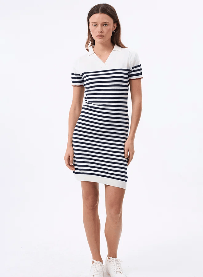 Step into effortless summer elegance with this Striped Knit V-Neck Midi Dress. Crafted from soft, breathable knit fabric, it keeps you cool and comfortable while providing a flattering silhouette. The collared V-neck design adds a touch of sophistication, and the striped pattern enhances the overall chic, modern look.